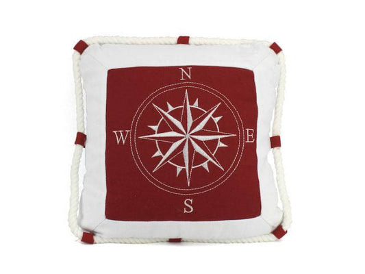Nautical Throw Pillow - Blue Compass with Nautical Rope Decorative Throw Pillow 16"