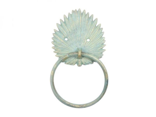 Tropical Towel Holder - Cast Iron Palm Frond Towel Holder for your Home, Vacation Home, Boat, Camper, and More. Antique Seaworn Bronze Cast Iron Wall Mounted Decorative Metal Palm Frond Hook 7”