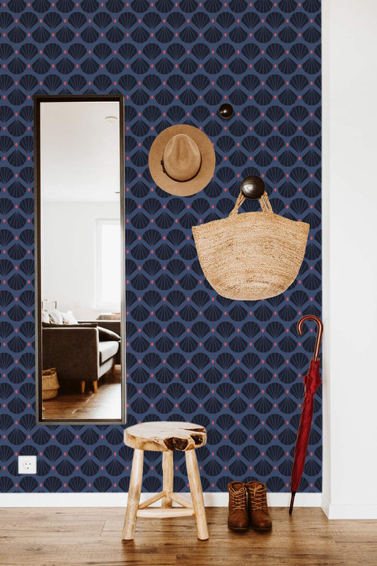 Vintage-Inspired Shell Nautical Peel and Stick or Traditional Wallpaper