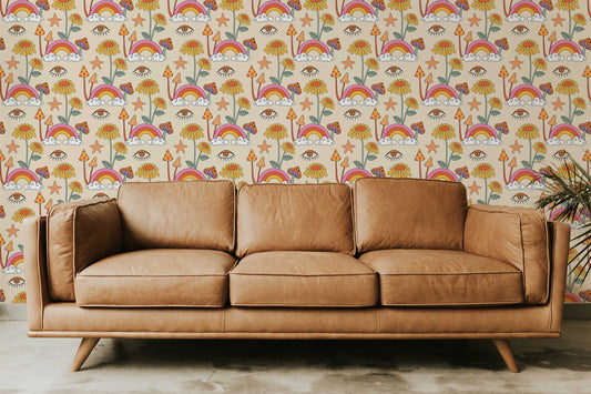 Psychedelic Mushroom Peel-and-Stick or Traditional Wallpaper for yourHome, Camper van, or Vintage Trailer,
