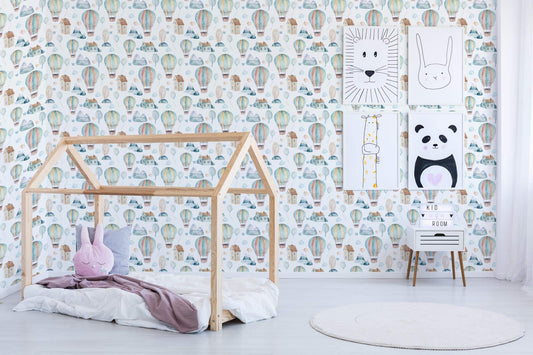 Watercolor Hot Air Balloon Wallpaper - Peel and Stick or Traditional Wallpaper for your Nursery, , Camper van, or Vintage Trailer,