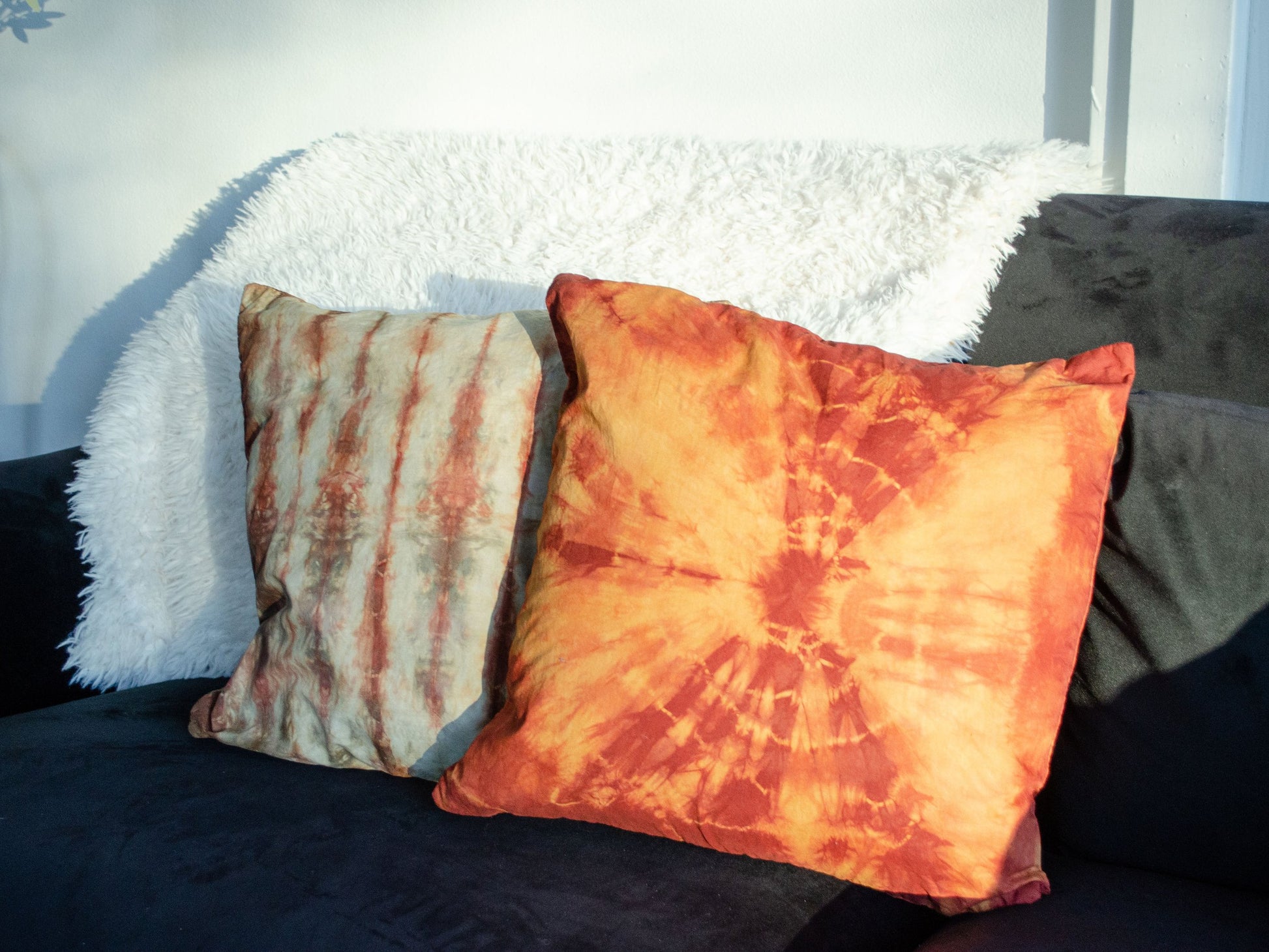 Add some color to your bedroom or living room with these hand-dyed pillowcases! Zippered pillowcases are 18” x 18” and do not include pillow inserts. Made of 100% cotton with a thread count of 90 x 70. Made in Indonesia and dyed in Bend, Oregon by 1 Life. Each set of two 100% cotton pillowcases comes with a hand-dyed reusable bag.