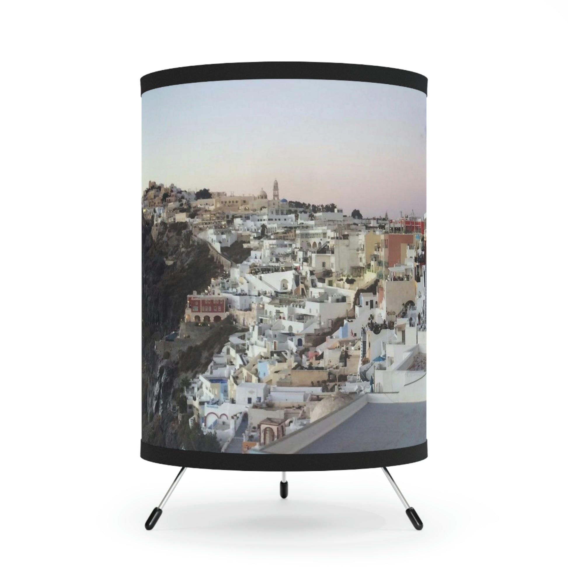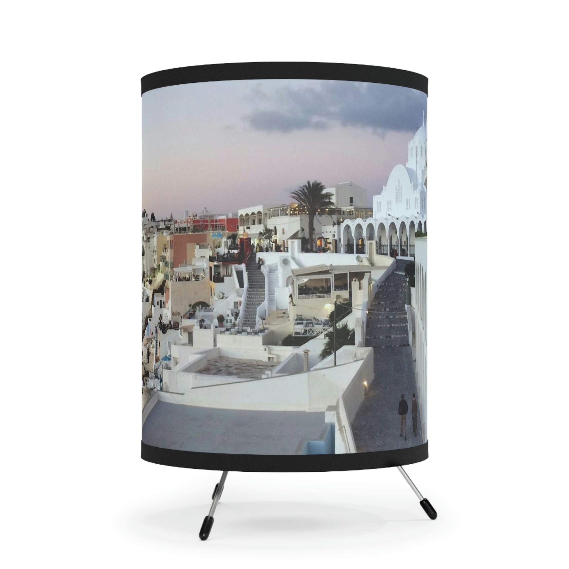A Stroll in Santorini Lamp - Tripod Lamp with Printed High-Resolution Shade, US\CA plug