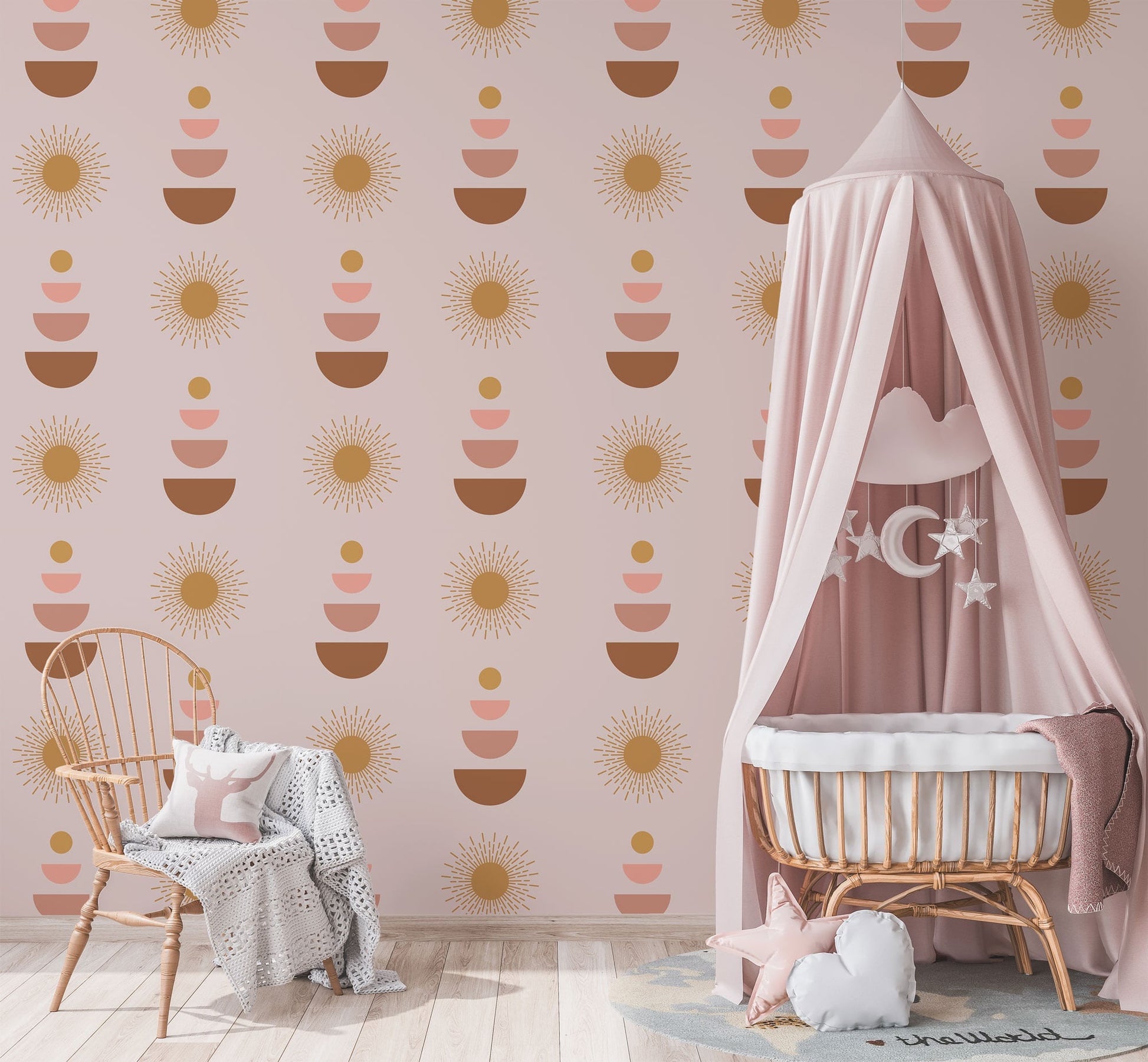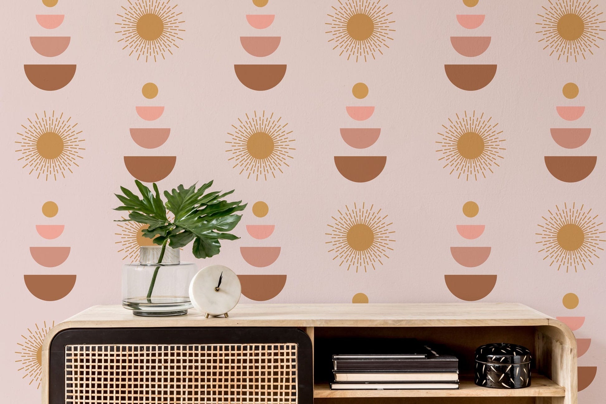 Boho Pink Peel and Stick or Traditional Wallpaper in Beige Plaid Print for your Campervan, Home, Airbnb, or Baby Nursery