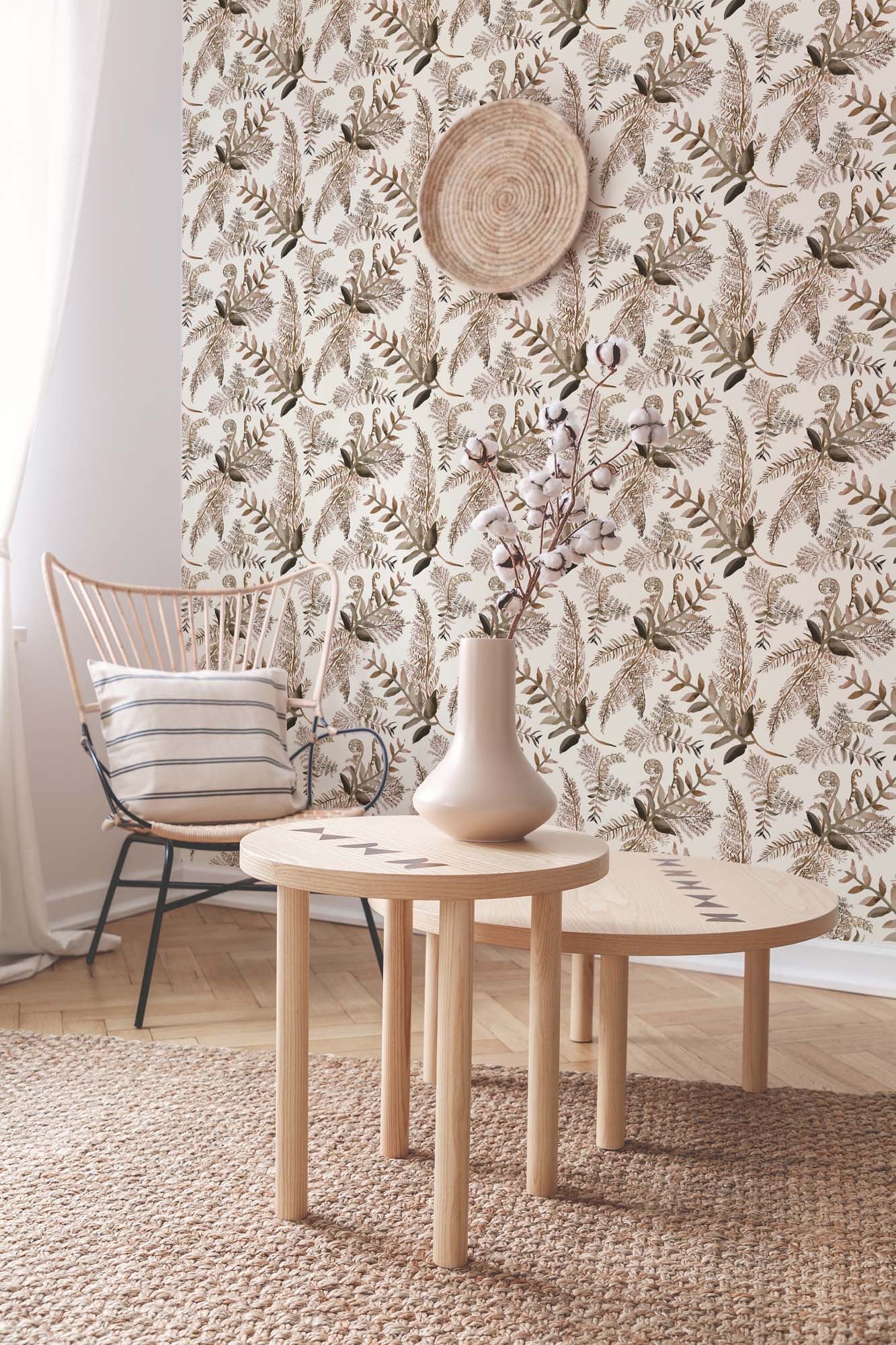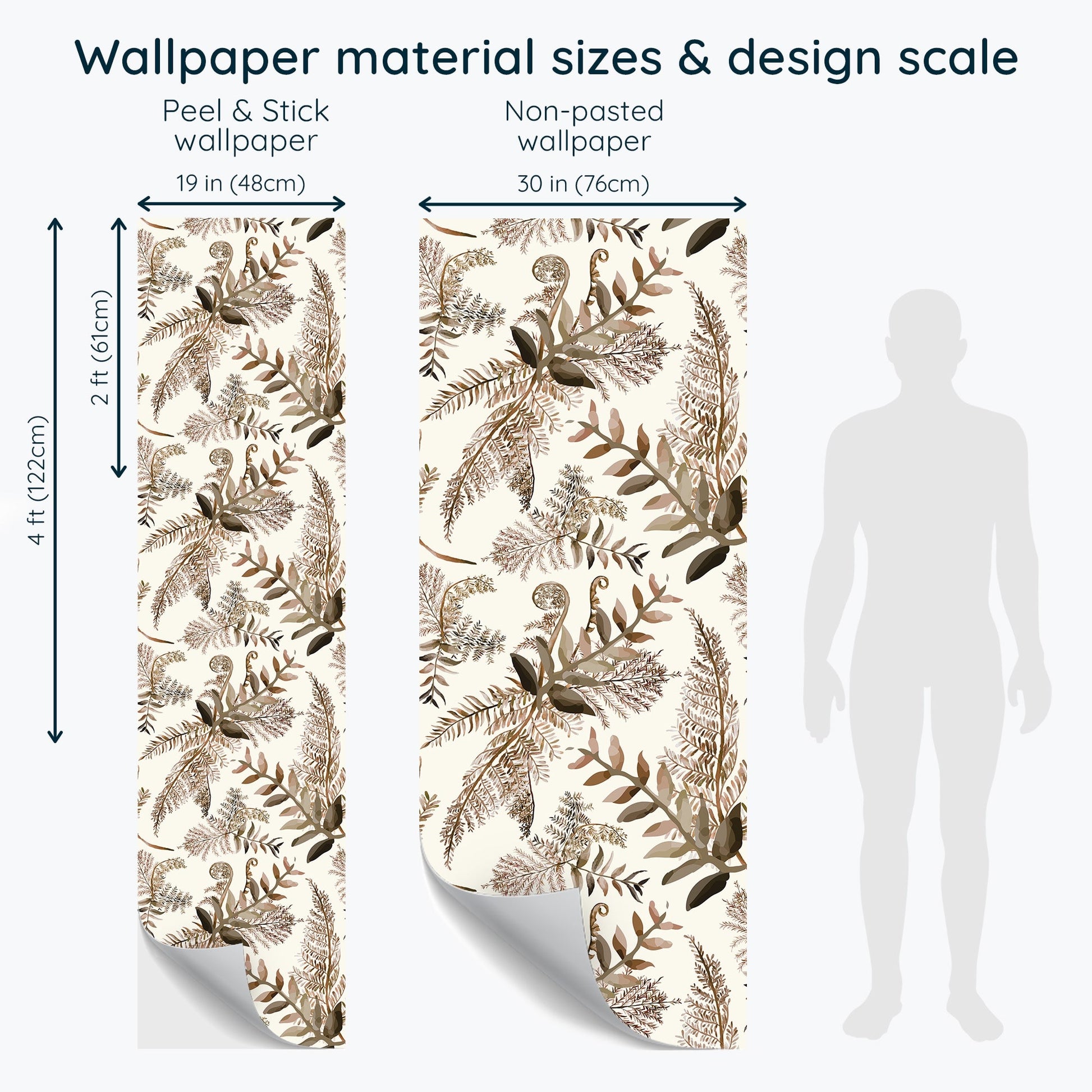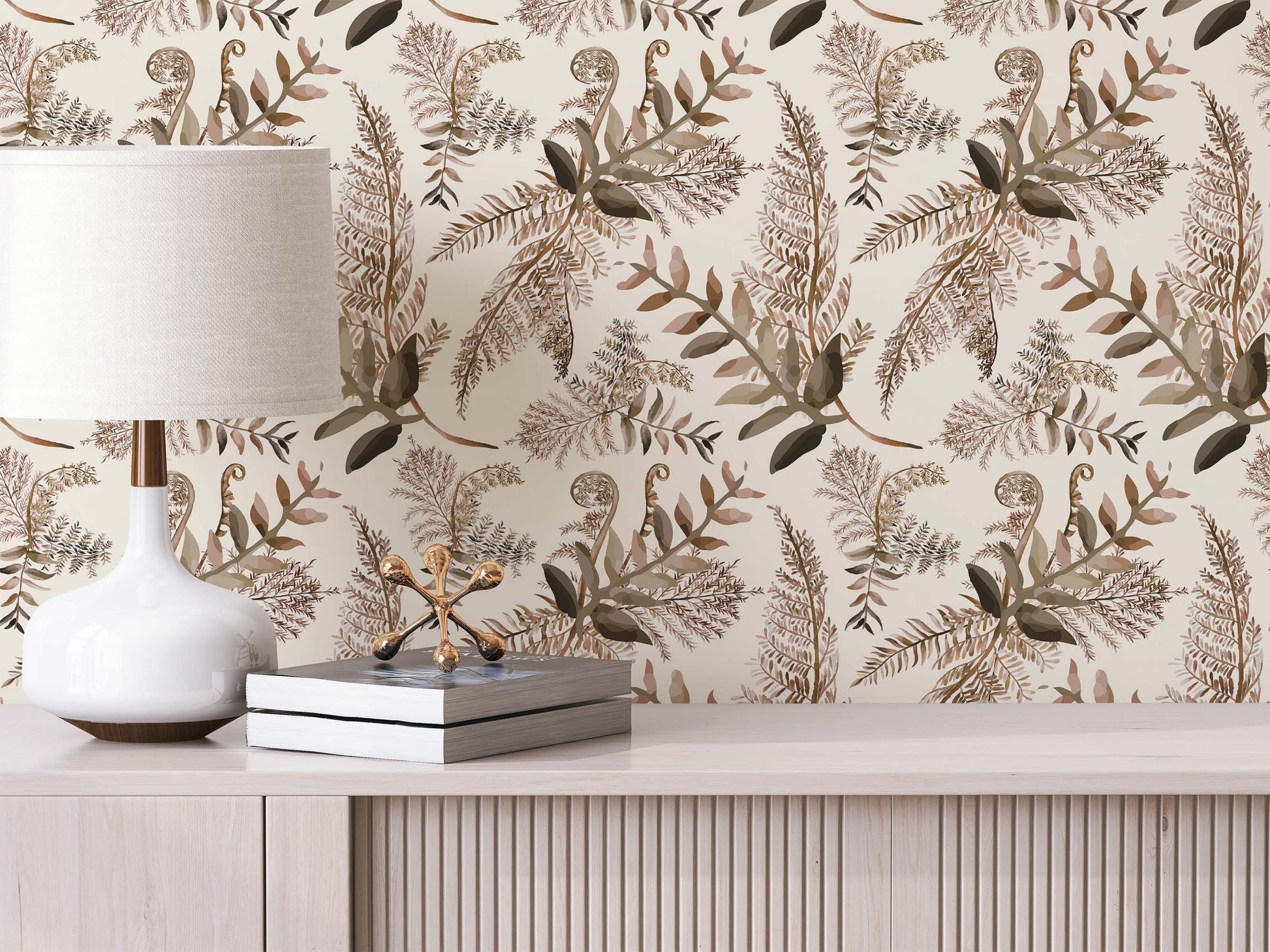 Camper or Home Wallpaper - Neutral Fern Peel and Stick or Traditional Wallpaper