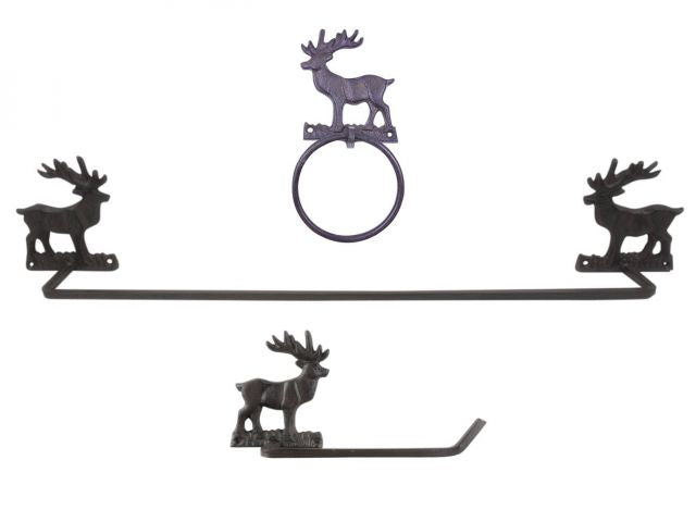 Moose Bathroom Accessory Set - Cast Iron Set of 3 Items - Large Bath Towel Holder and Towel Ring and Toilet Paper Holder