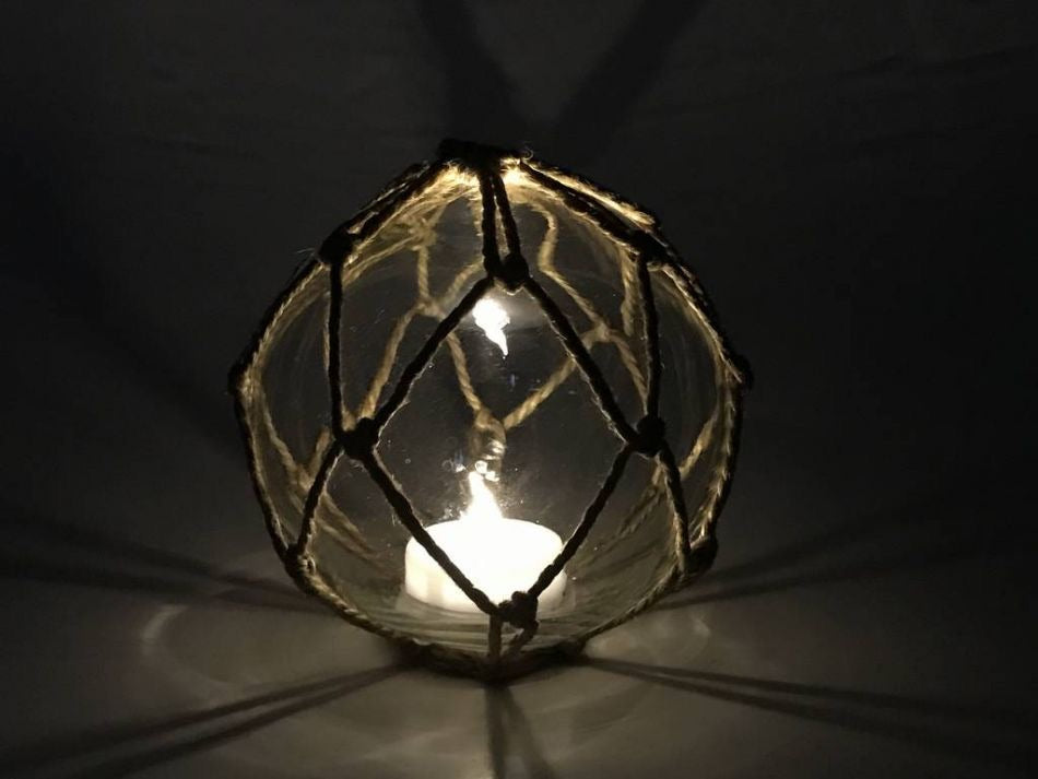 This 4” LED Lighting Japanese Glass Ball Fishing Float with Brown Netting Decoration is a perfect beach art decoration. Gorgeous weather in your home or office, indoor or out, enjoy the charming inner warmth of this glass float as the flameless LED tea light inside plays throughout the glass ball. Perfectly contrasting the glass float is the authentic fishing rope netting which holds the float in place. Mesmerizing and enchanting, enjoy the historic wonder and brilliant style of this LED-lit nautical glass float every day.
