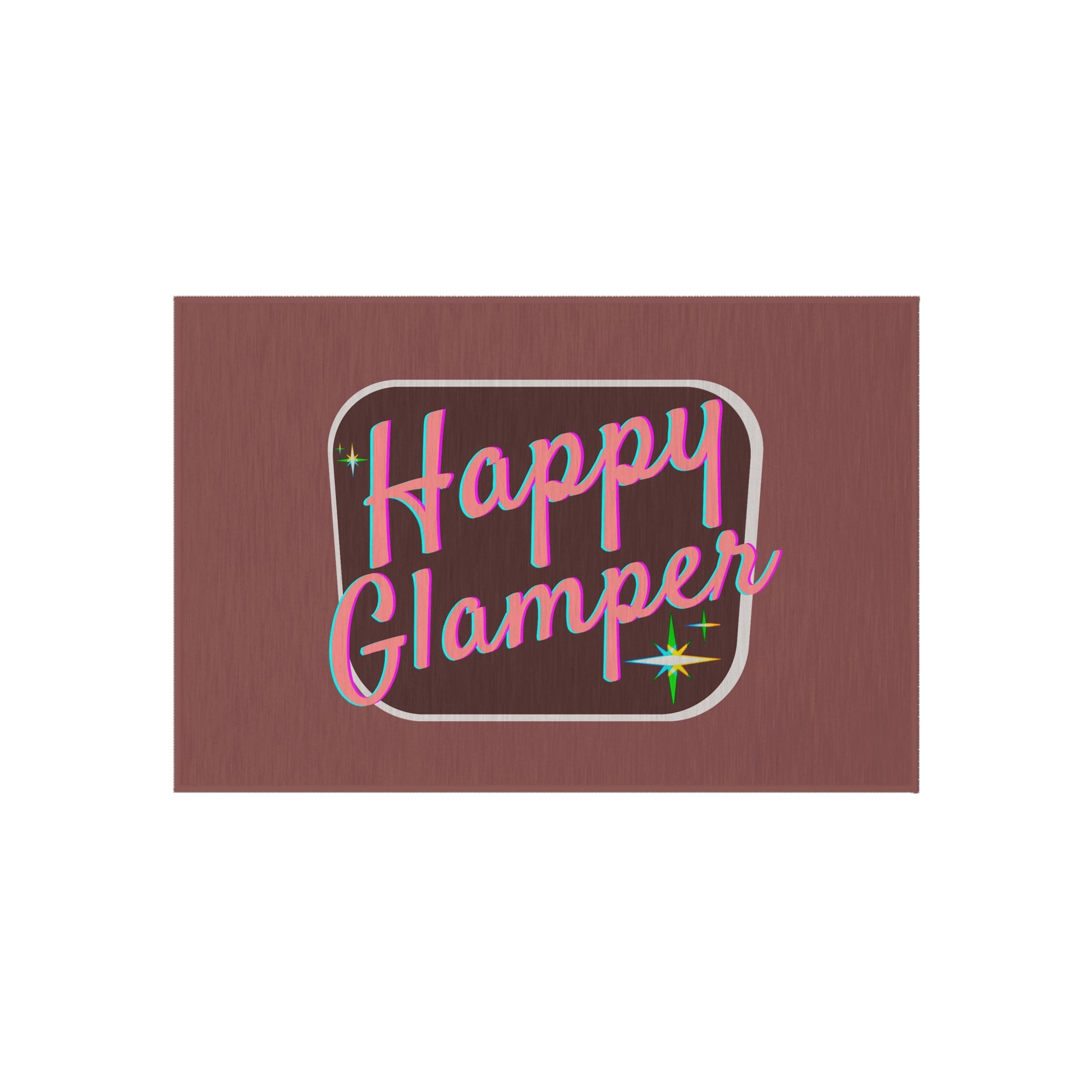 Camping Mat - Glamping Outdoor Rug - Happy Glamping Rug for Your Camper Van, Tent, or RV
