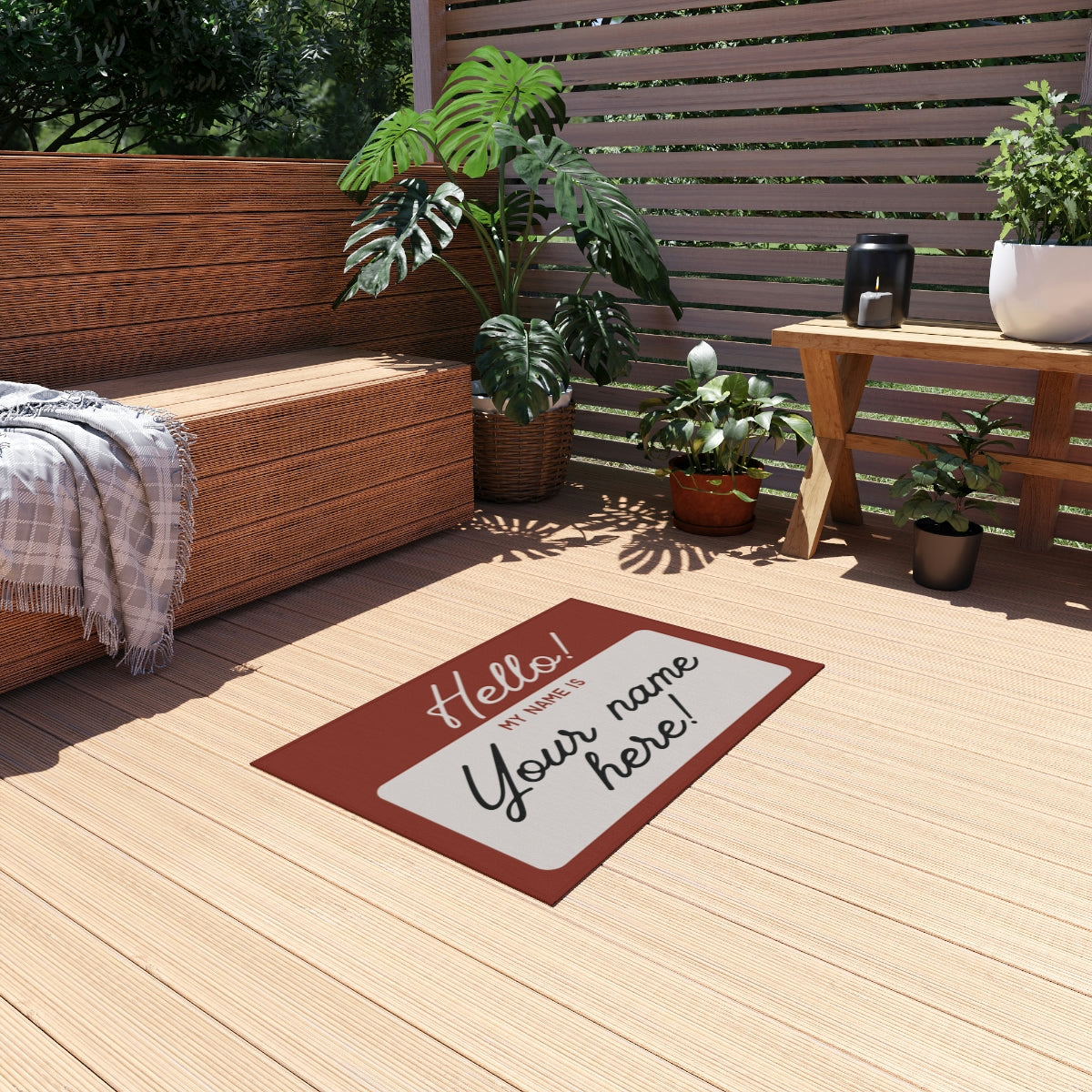 Hello My Name Is… Outdoor Rug - Custom for your Home, Campervan, RV, Vintage Trailer, Campsite, Glamping