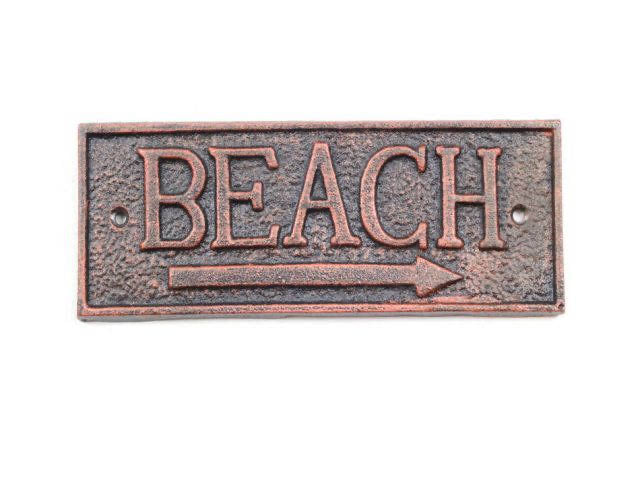 Rustic Copper Cast Iron Beach Sign 9", For Inside or Outside Use in your RV, home, Vacation Home, Hotel, Nursery, etc
