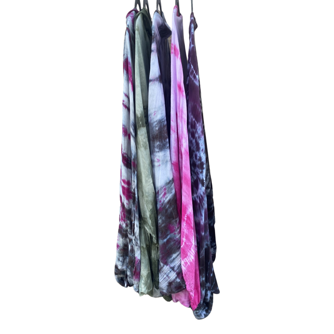 Every piece is dyed by hand in Bend, Oregon and is completely individual, just like the person wearing it. Each order comes packed in a hand-dyed reusable bag!