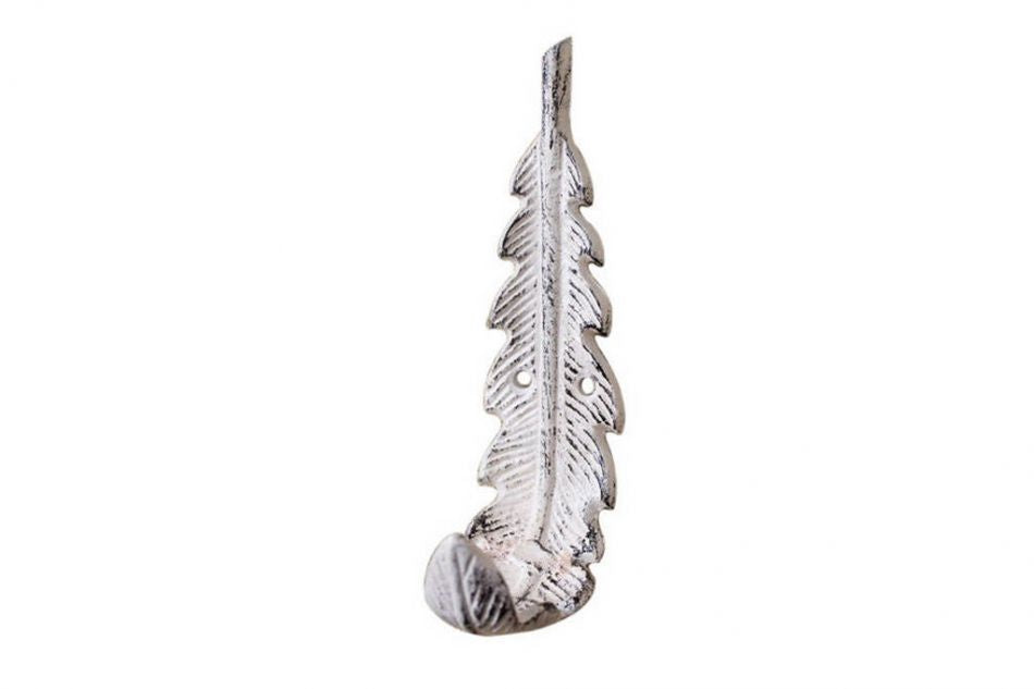 Feather Hook - Whitewashed Cast Iron Decorative Feather Hook 6"